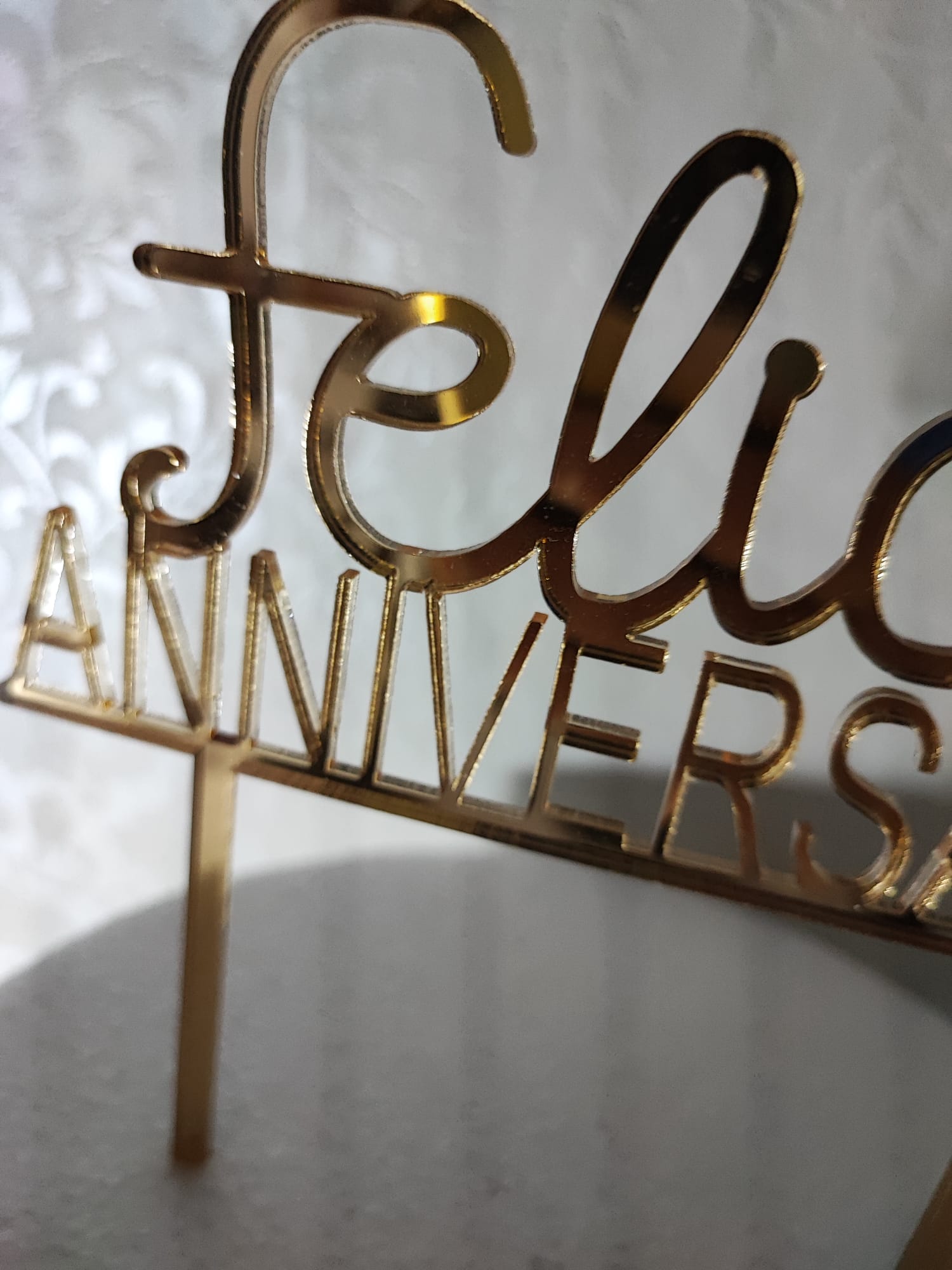 Il Cake Topper Felice Anniversario modello PARIGI, è una decorazione per torte adatte alla celebrazione disponibile in diversi colori e personalizzabile. È una creazione originale in plexiglass realizzata interamente nel nostro laboratorio, può essere modificata sia nel colore che nelle misure.