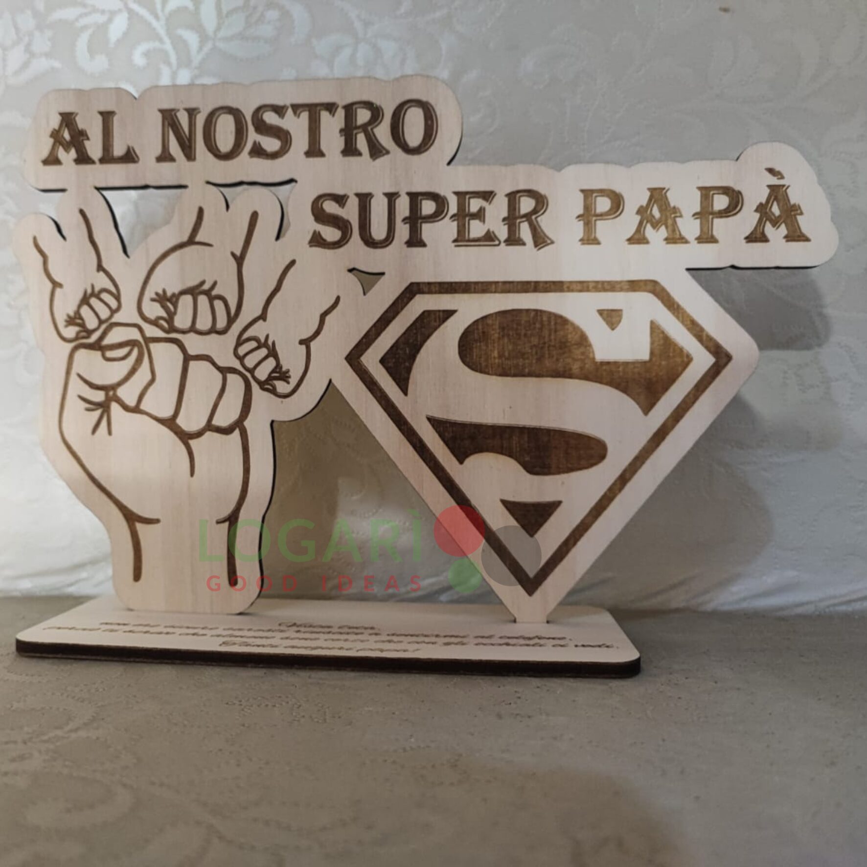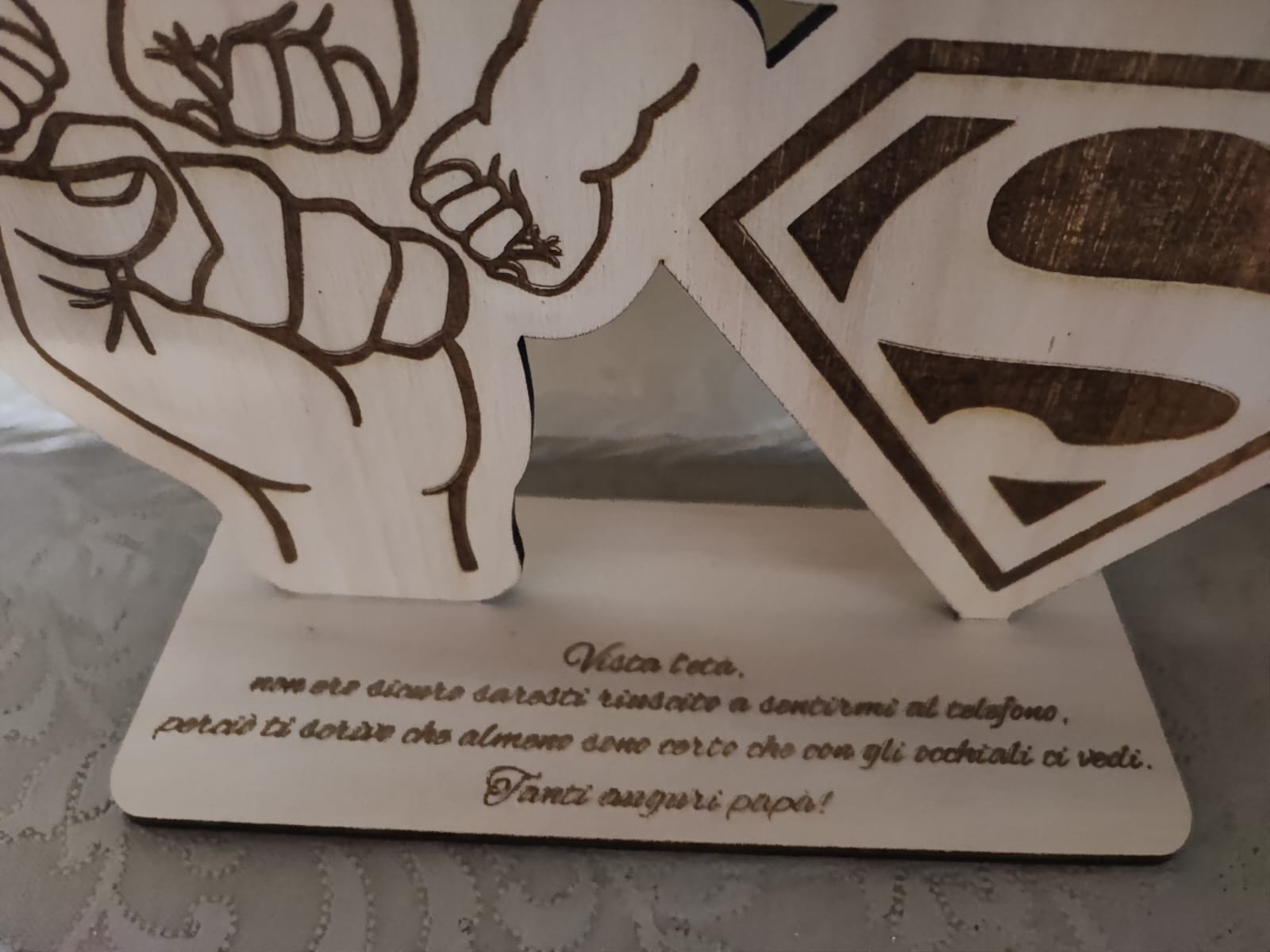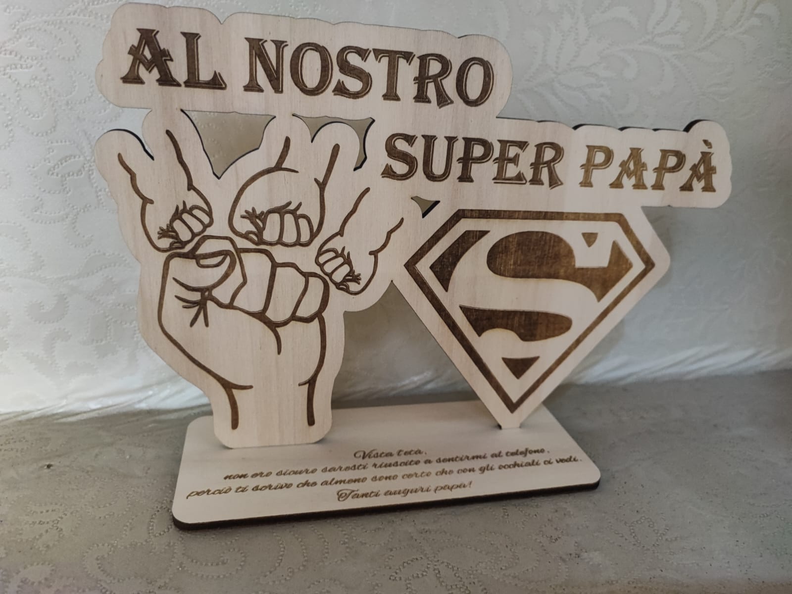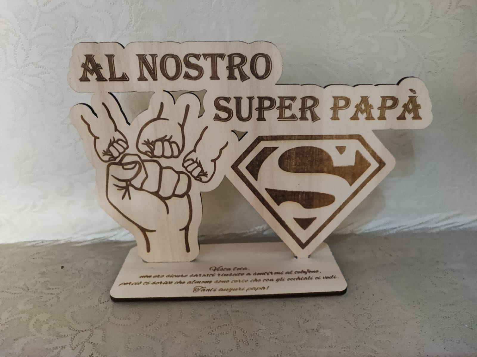 Targa in legno con incisione, 25cmx17cm, con base personalizzabile, con una frase o un pensiero, e possibilità di aggiungere i nomi dei figli e del genitore sui polsi. Perfetta idea regalo per la festa del papà.